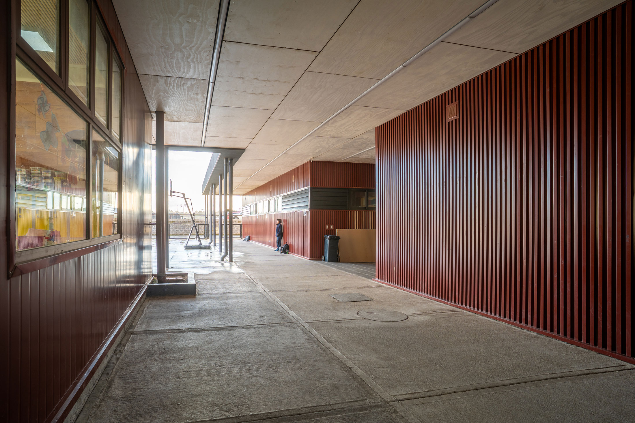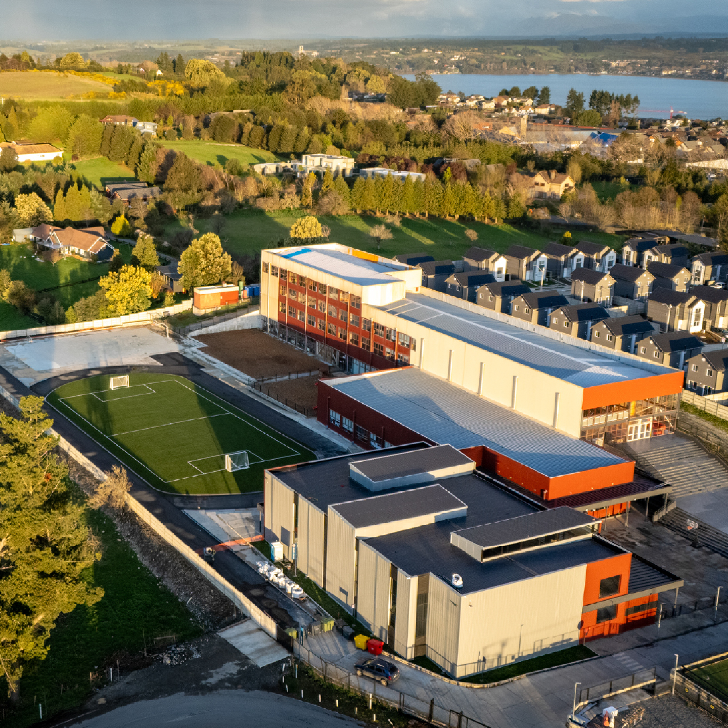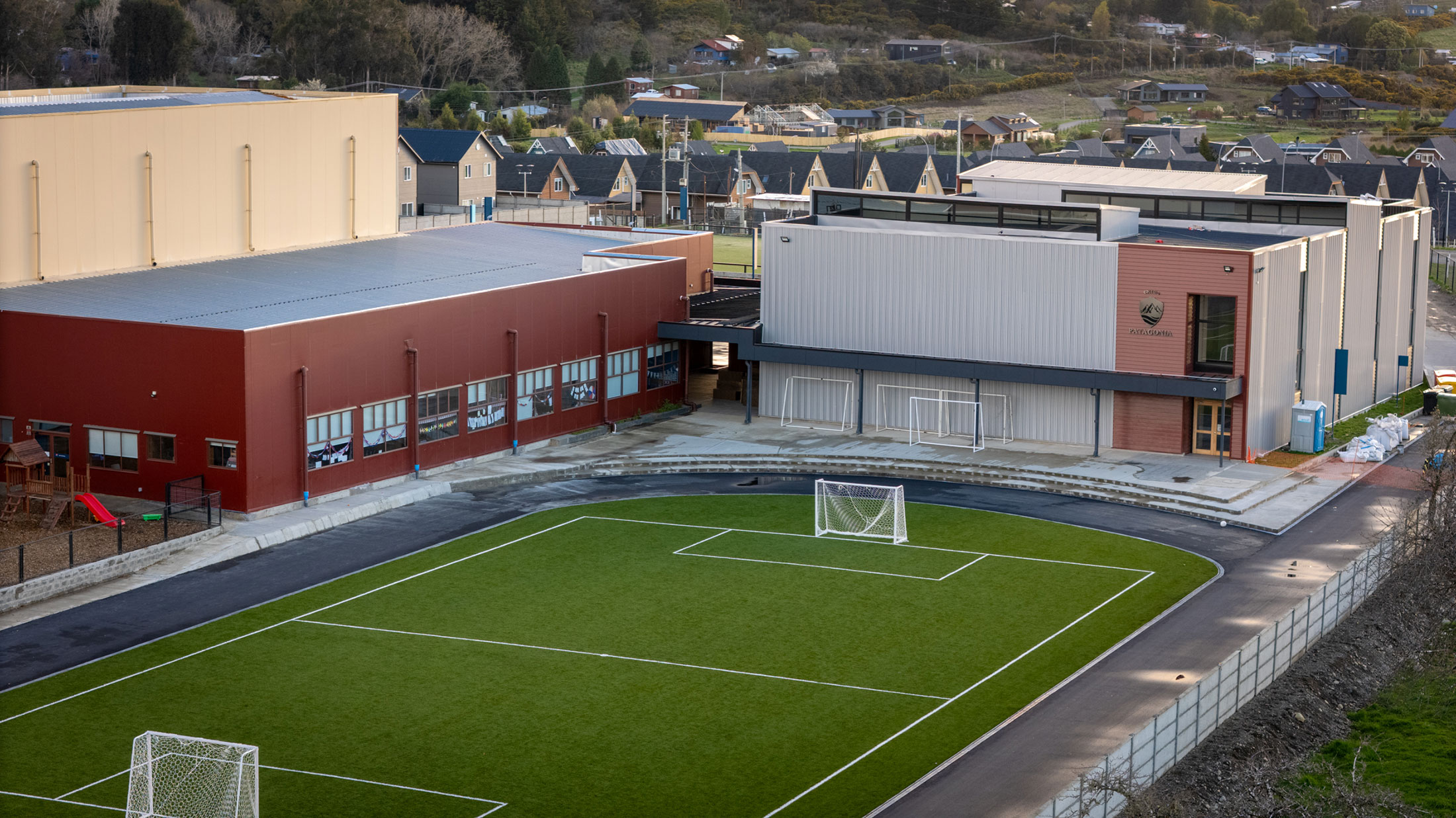 En los espacios exteriores destaca la pista atlética con su cancha de fútbol; y una multicancha, que son parte de un proyecto que irá sumando elementos para convertirse en un espacio de convivencia y de deporte.