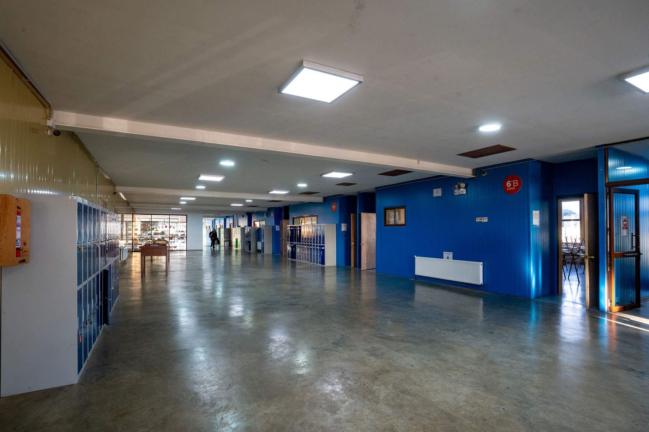 En el 2ndo piso están ubicadas las salas de los niveles 2° a 6° básico; en el 3er piso de 7° a IV; y en el 4to piso están las oficinas y los espacios destinados a los profesores. Adicionalmente, en cada piso existen oficinas del personal de Asuntos estudiantiles destinado a los cursos de ese espacio.